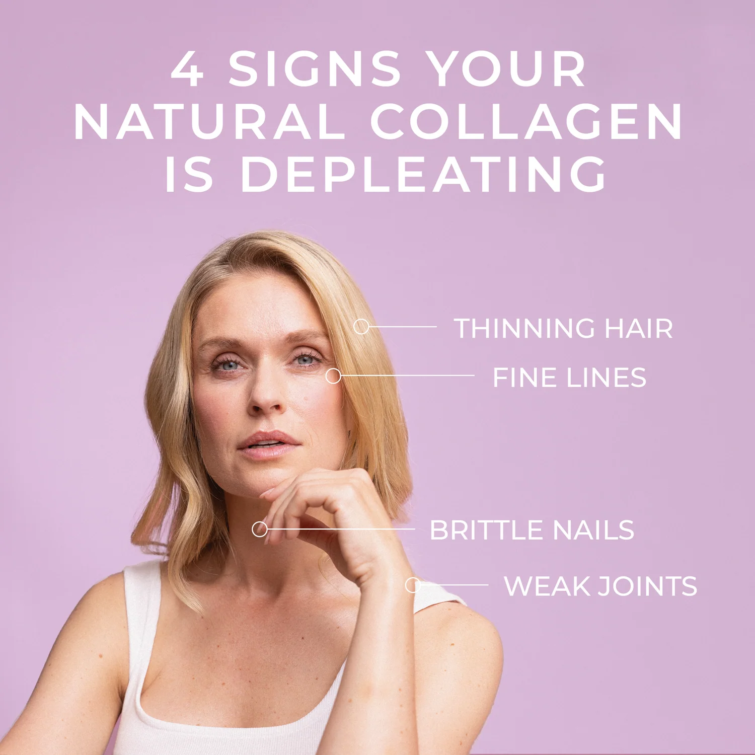 Pure hydrolyzed fish collagen type 1 and 3 (peptide hydrolyzed fish collagen containing the amino acids: L-glycine, L-proline, L-alanine, L-hydroxyproline, L-glutamic acid, L-arginine, L-aspartic acid L-serine, L-lysine, L-leucine, L-valine, L-threonine, L-phenylalanine, L-isoleucine, L-hydroxylysine, L-methionine, L-histidine, L-tyrosine, L-cysteine). Allergy information: Contains FISH.