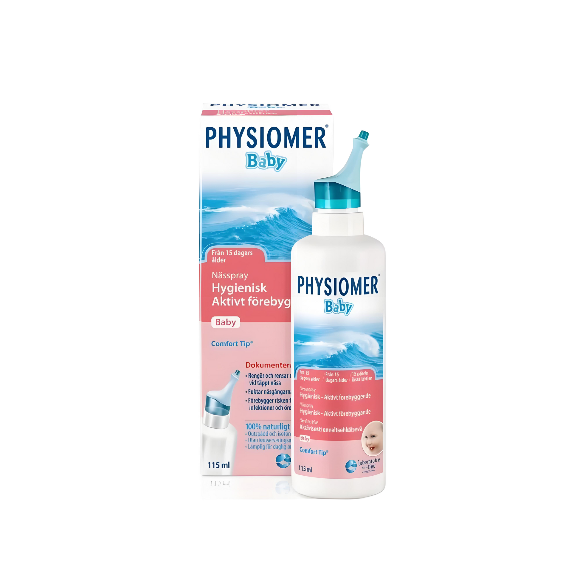 Physiomer Baby Mist är speciellt anpassad för nässköljning och rengöring av spädbarn och små barns känsliga näsor. Den milda sprayen rengör och rensar näsgångarna vid täppt näsa och gör sömn och amning bekvämare, t.ex. vid förkylning. Samtidigt återfuktar den näsgångarna och förhindrar sekundära infektioner och öroninfektioner.